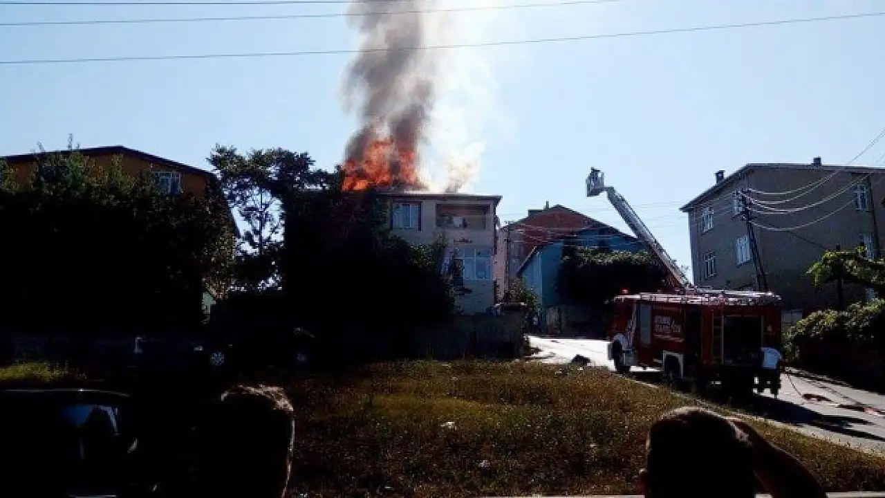 Sultanbeyli'de 3 katlı binanın çatısı alev alev yandı