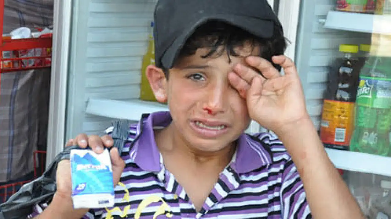 Türkiye’deki Suriyeli mültecilerin sayıları gün geçtikçe artarken, yoksulluk içinde büyüyen Suriyeli çocuklar da ekmek parası kazanmak için sokaklarda mendil satıyor. İzmir’de bir lokantada yemek yiyen müşterilere mendil satmaya çalışan Suriyeli çocuk, esnafın saldırısına uğradı. Türkçe bilmediği için ismi öğrenilemeyen Suriyeli çocuk, Basmane Meydanı'nda lokantada yemek yiyen vatandaşların yanına gitti.