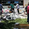Suruç'ta Amara Kültür Merkezi önünde saat 11.40 sıralarında Sosyalist Gençlik Dernekleri Federasyonu üyelerinin basın açıklaması yaptığı sırada meydana gelen patlamanın ardından inceleme yapıldı. Patlamanın şiddetiyle kültür merkezinin camlarının kırıldığı gözlenirken, yerdeki cesetlerin üzeri gazetelerle örtüldü. Güvenlik güçlerinin yoğun önlem aldığı Amara Kültür Merkezi'nin çay bahçesinde incelemede bulunan ekipler, delilleri topladı. İncelemenin ardından torbalara konulan cesetler, cenaze araçlarıyla morga kaldırılmaya başlandı.