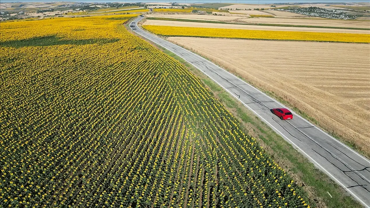 Tekirdağ'da 'gündöndü' tarlaları sürücülere renkli rota sunuyor