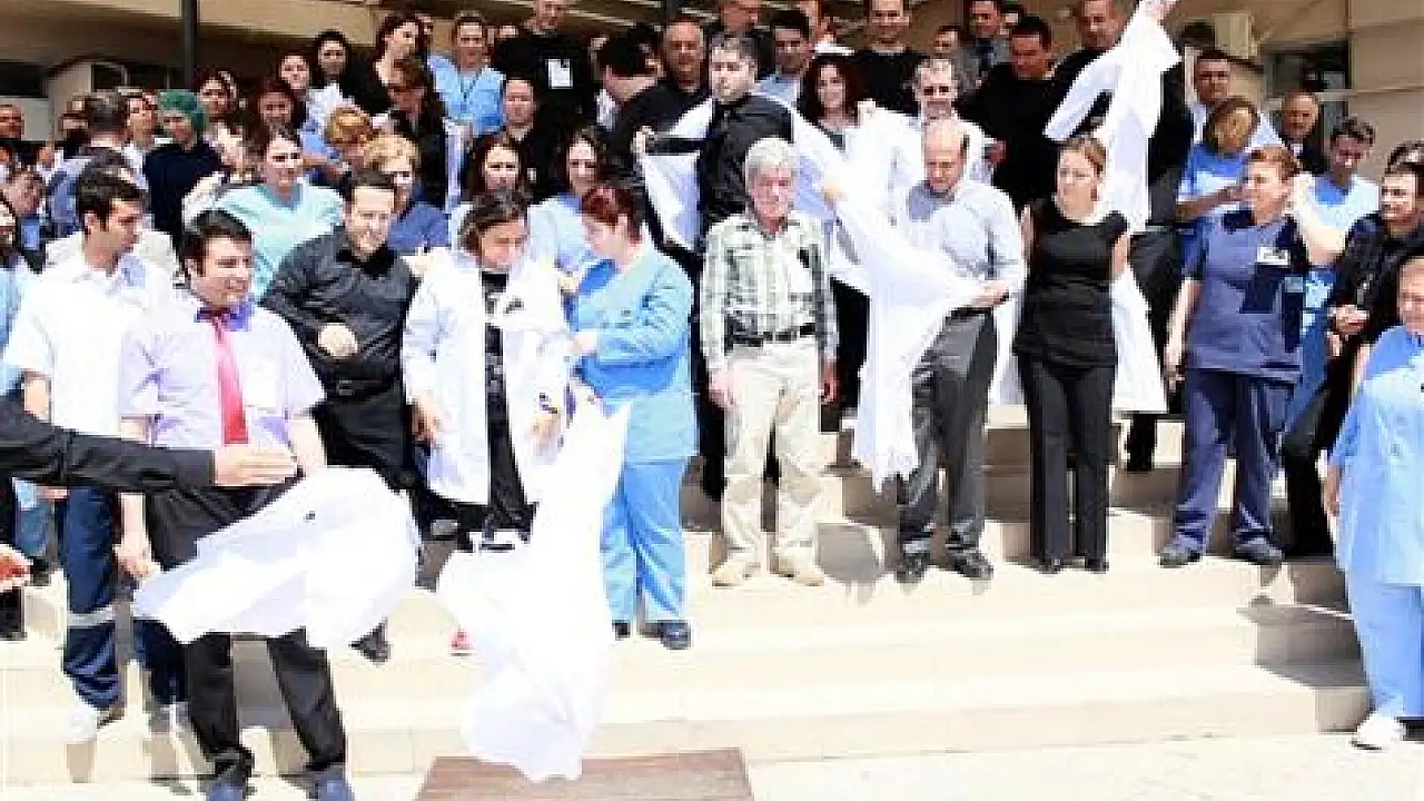 Yapılan basın açıklamasında doktorlar “şiddete hayır” diye slogan attılar. Ayrıca doktorlar yapılan eylemde, alkışlar eşliğine önlüklerini çıkararak protesto eylemine devam ettiler.