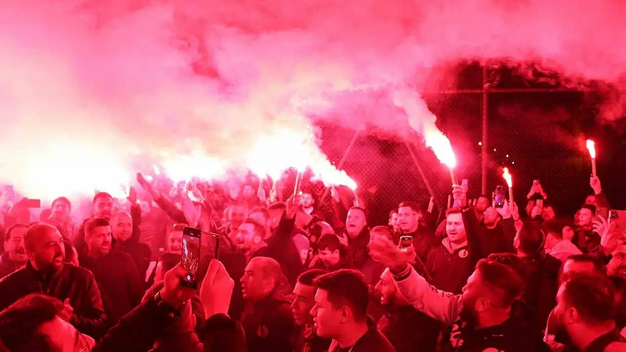 Eskişehirspor taraftarı, bugün oynanacak Kırşehir Gençlik Hizmetleri maçı için takıma moral vermek amacıyla gece Vali Hanefi Demirkol Tesisleri'nin önünde bir araya geldi.