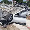 Takla atan araçtan burnu bile kanamadan kurtuldu