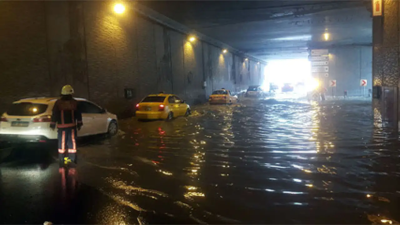 İstanbul'da etkili olan yağmur nedeniyle Beyoğlu Taksim-Tarlabaşı tünelini su bastı. Su birikintileri sürücülere zor anlar yaşatırken, trafikte uzun araç kuyrukları oluştu.
