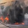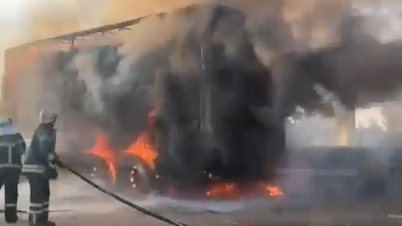TEM Otoyolu'nun Kocaeli geçişinde talaş yüklü kamyon alev aldı.