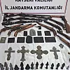 Kayseri'de jandarma ekipleri tarafından bir şahsın iş yerinde, aracında ve ikametinde yapılan çalışmalarda çok sayıda tarihi eser bulundu.