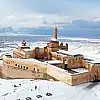 Tarihi İshak Paşa Sarayı martta karla kaplandı