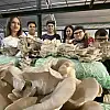 Antalya'nın Aksu ilçesindeki Aysel Akın-Klaus Wagner Mesleki ve Teknik Anadolu Lisesi öğrencileri, okulun mantar üretim alanında Mustafa Kemal Özel Eğitim Meslek Okulu'ndan gelen özel öğrencilerle birlikte mantar hasadı yaptı.