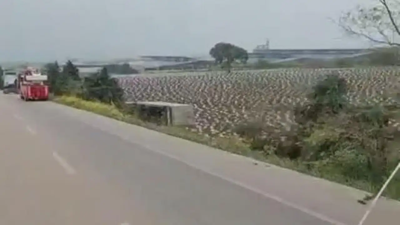 Kaza, Bursa-Balıkesir Yolu üzerinde Karacabey mevkiinde meydana geldi. Sürücüsü ve plakası henüz öğrenilemeyen tır, sürücüsünün kontrolünden çıkarak yol kenarında bulunan tarlaya uçtu. Yaşanan kazayı gören vatandaşlar durumu 112 Acil Servis Hattı'na bildirdi. İhbar üzerine olay yerine ekipler sevk edildi. Tarlaya uçan tır, vinç yardımıyla çıkarıldı.