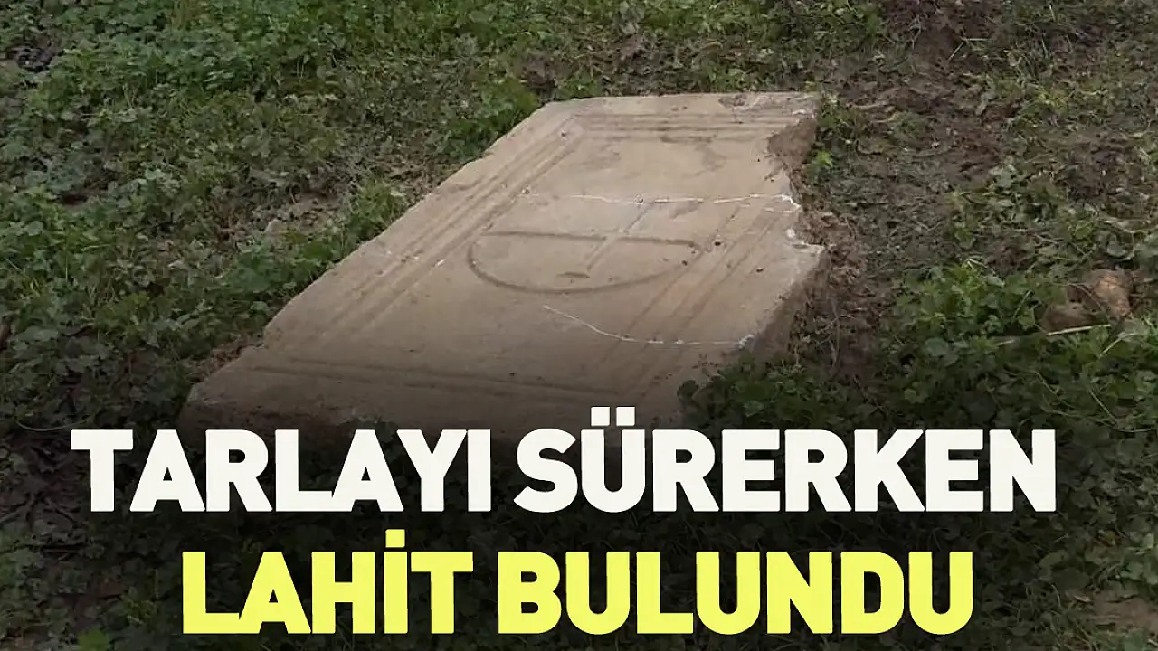Bursa'nın İznik'e bağlı Hocaköy'de, tarlasını süren bir çiftçi pulluğuna lahit takıldı.