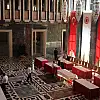 TBMM Şeref Holü 27. Dönem milletvekilleri için hazırlanıyor. Şeref Holü'nde masalar hazırlandı, Türk bayrakları ve TBMM flamaları asıldı.