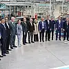 Togg Teknoloji Kampüsü’ndeki gövde, boya, montaj ve batarya olmak üzere dört ayrı bölümde üretim aşamaları hakkında bilgi alan heyete, Gürcan Karakaş, mobilite ekosistemi, teknolojideki gelişmeler ve vizyonu içeren bir sunum yaptı.