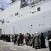 Girişte her noktada görevli askerler tarafından karşılanan ve yönlendirilen ziyaretçiler, cep telefonlarıyla devasa gemiyi ve içindekileri görüntüledi.