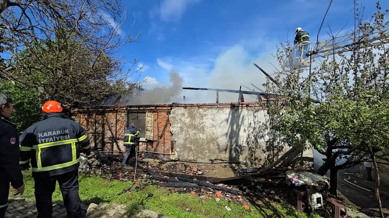 Karabük'te henüz nedeni belirlenemeyen bir şekilde çıkan yangından tek katlı bir ev alevlere teslim oldu.