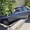 Elazığ'da tekeri patlaması sonucu virajı alamayan otomobil, bina yanındaki kömürlüğün üzerine çıktı.