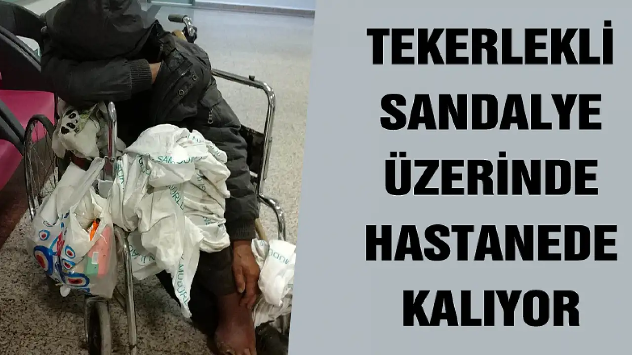 Samsun'da bir kişi uzun süredir tekerlekli sandalye üzerinde hastanenin acil servisinde kalması, hem hastaları hem hasta yakınlarını hem de hastane personeline zor anlar yaşatıyor