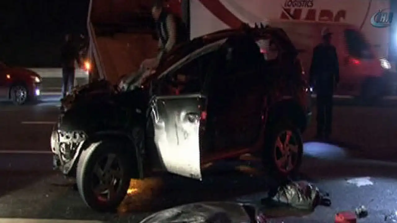 Kaza, TEM Otoyolu Edirne istikameti Gazi Mahallesi sapağında saat 23:00 sıralarında meydana geldi. Edirne istikametinde seyir halinde olan 34 ZB 7529 plakalı otomobil iddiaya göre, emniyet şeridinde park halindeki 41 VN 572 plakalı TIR'a arkadan çarptı.