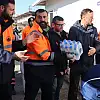 Belediye personeli tırları dualarla yolcu etti.