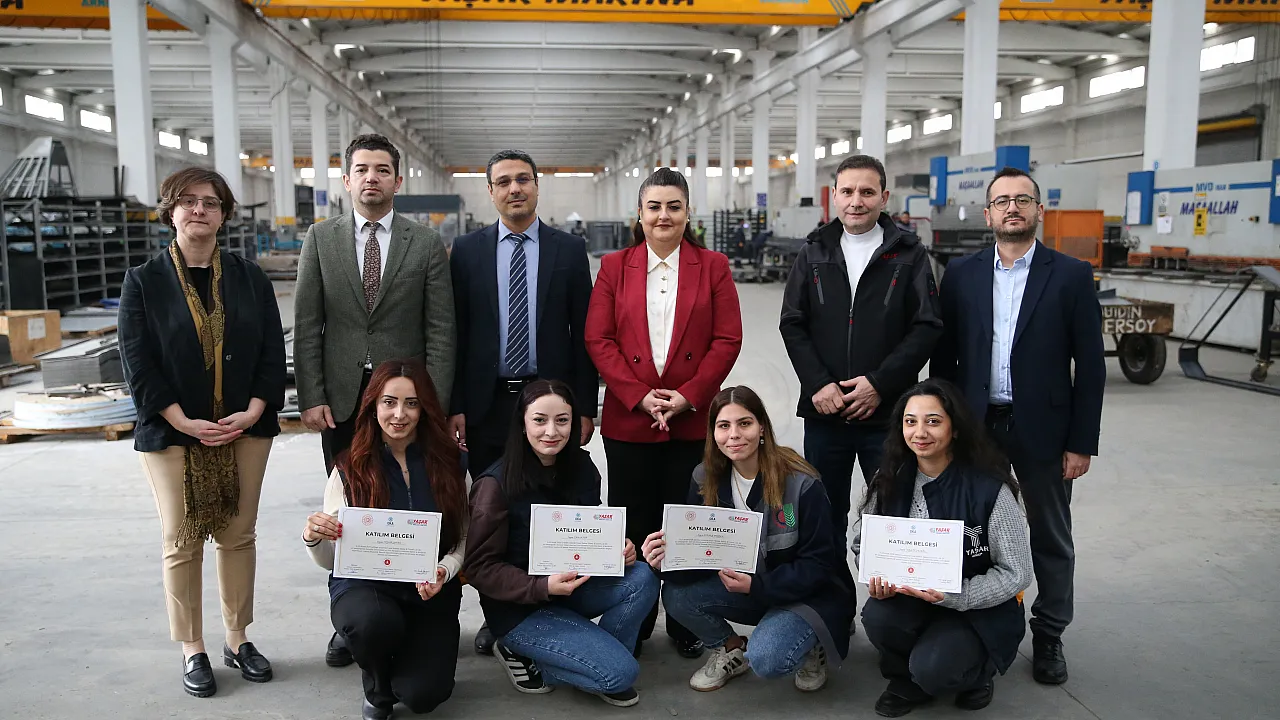 Programı başarıyla tamamlayan 6 kadın kursiyere sertifikaları, Yaşar Makine Sanayi’nin üretim sahasında düzenlenen törenle takdim edildi.