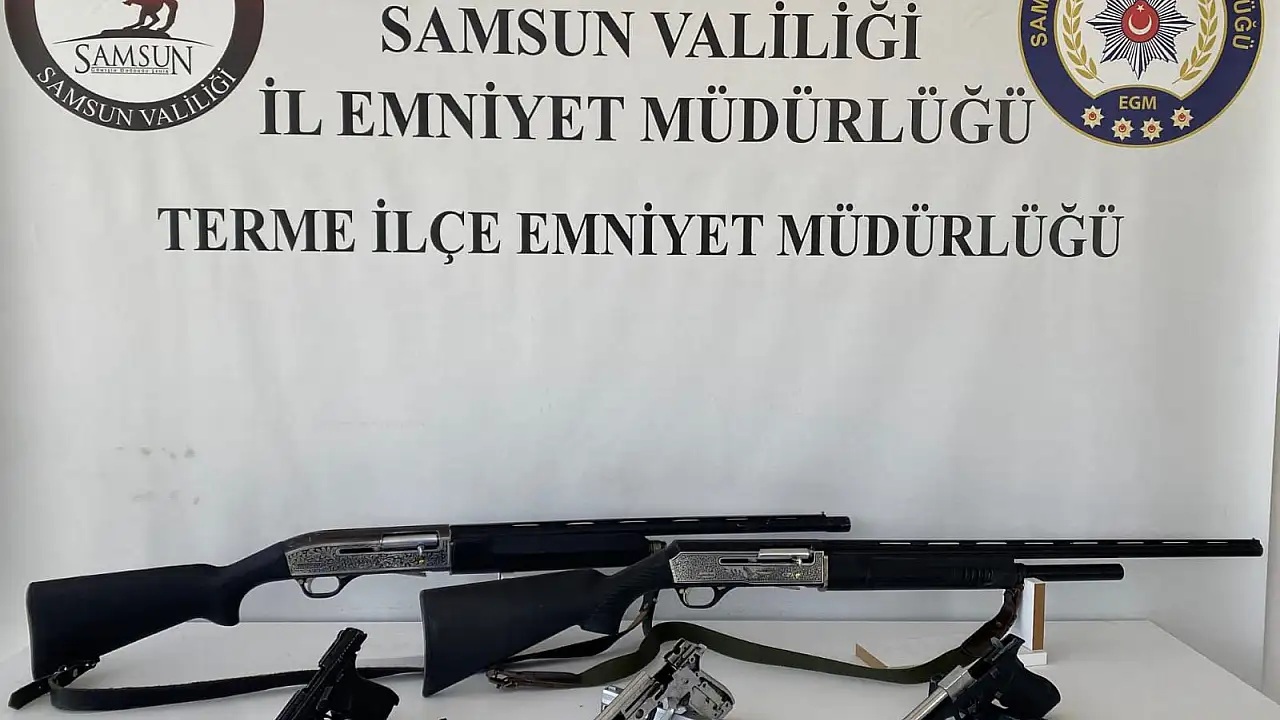 Terme İlçe Emniyet Müdürlüğü ekipleri, bir adreste ruhsatsız silah bulunduğu bilgisi üzerine çalışma gerçekleştirdi. Belirlenen adreste yapılan aramada 2 ruhsatsız av tüfeği ve 3 kurusıkı tabanca ele geçirildi.