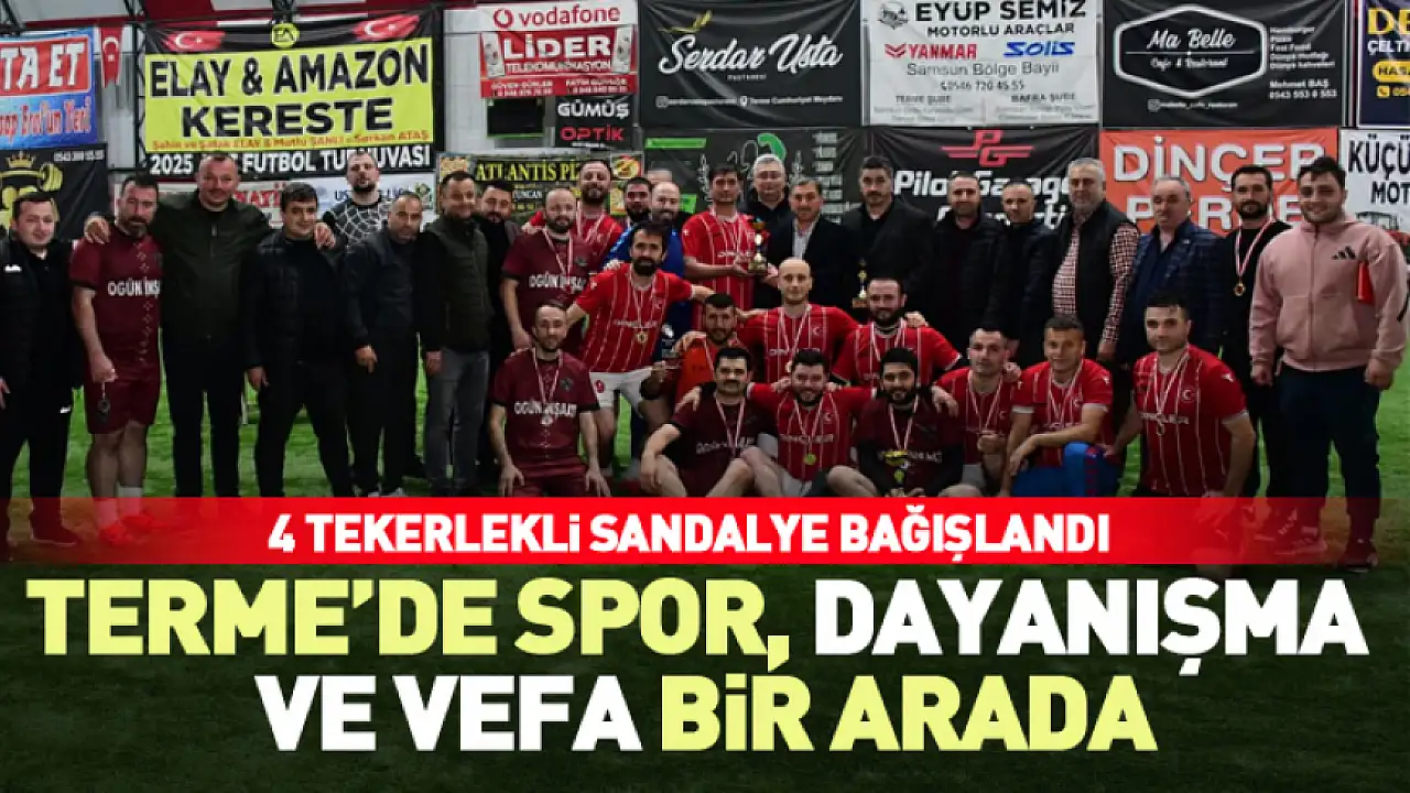 Terme Belediyesi'nin düzenlediği 'Dua Et Kasap Şarküteri Ustalar Ligi' Futbol Turnuvası, Dinçler Tarım Makinaları'nın şampiyonluğu ile tamamlanırken, turnuvaya katılan 8 takım sosyal sorumluluk bilinciyle belediyeye 4 adet tekerlekli sandalye bağışladı.