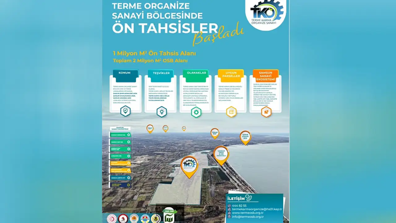 Sanayi ve Teknoloji Bakanlığı tarafından yayımlanan 2026 Yılı Ocak Ayı Ön Tahsis İlanları kapsamında, Samsun Terme Karma Organize Sanayi Bölgesi’nde yer alan 1 milyon metrekarelik alan için ön tahsis süreci başlatıldı. OSB’nin toplam büyüklüğünün ise 2 milyon metrekare olduğu bildirildi.