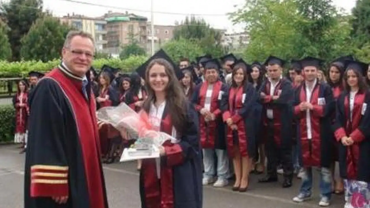 Törende konuşma yapan okul 1.'si Emriye Salihoğulları, ailesine ve hocalarına teşekkür ederek arkadaşlarına iş yaşamlarında başarı diledi.