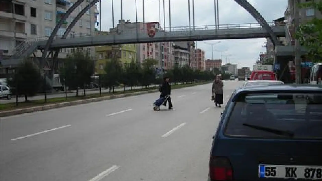 Terme şehir girişi kavşağındaki üst geçidi kullanmayan vatandaşlar, adeta kazaya davetiye çıkartıyor