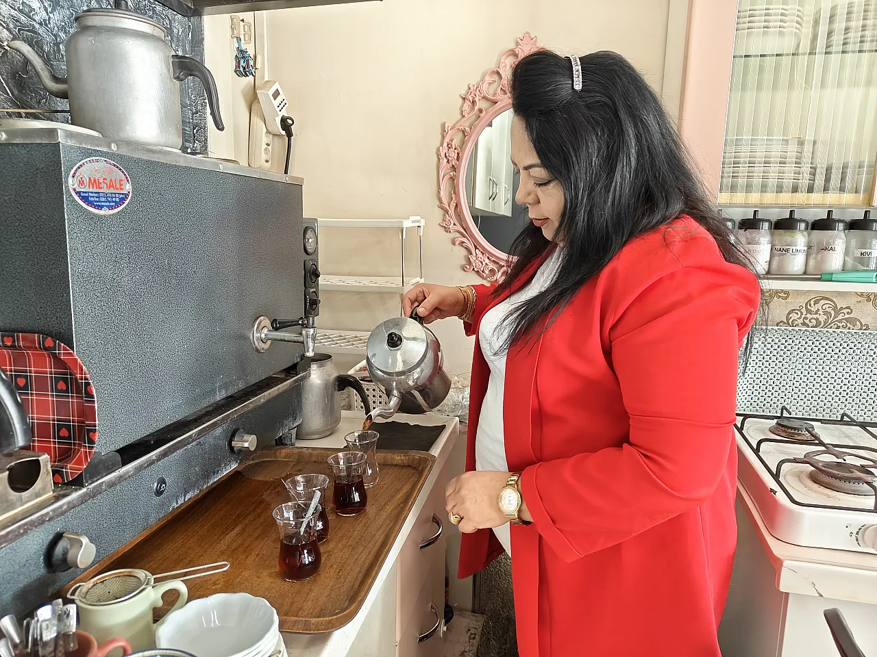Kayseri'de bir ilçe terminalinde çay ocağı işleten Sibel Kaymaz, hem müşterilerinin takdirini kazanıyor hem de kadınlara örnek oluyor. Erkek egemen olarak görülen mesleklerden biri olan çay ocağı işletmeciliğinde cesareti ve azmiyle öne çıkan Kaymaz, yıllardır sürdürdüğü işiyle dikkat çekiyor.