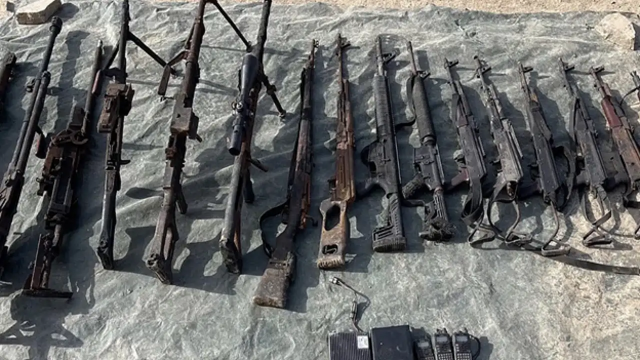 Teröristlerin teslim olduğu mağarada çok sayıda silah ve mühimmat ele geçirildi