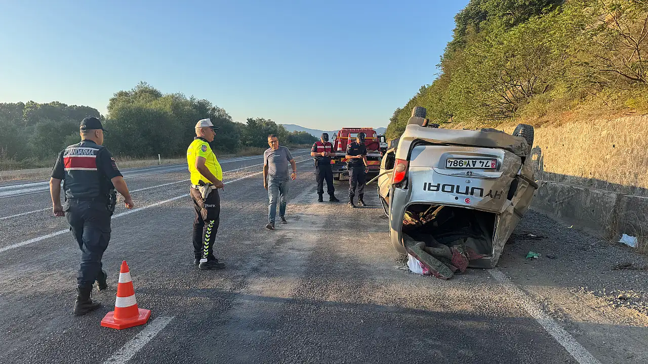 Bartın'da bariyere çarparak ters dönen aracın sürücüsü ağır yaralandı