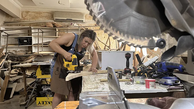 Samsun'da organizatör olarak çalışırken istediği mobilyaları ürettiremeyen 33 yaşındaki Bahar Kuru, erkeklerin 'Sen yapamazsın' demesine inat marangoz tezgahının başına geçerek işin inceliklerini öğrenmeye başladı