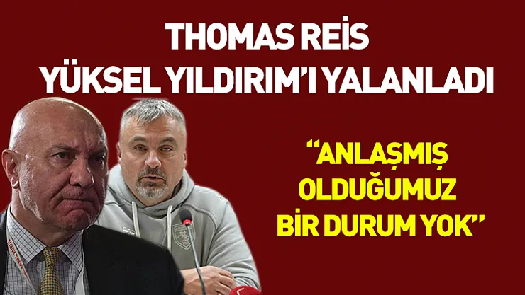 Teknik direktör Thomas Reis kendisi ile 2 yıllık yeni sözleşme konusunda anlaşmaya vardıklarını duyuran Yüksel Yıldırım'ı yalanladı. 'Anlaşma'ya vardık' diyen Yıldırım'ın aksine Reis, 'Şu an için anlaşmış olduğumuz bir durum yok' dedi.