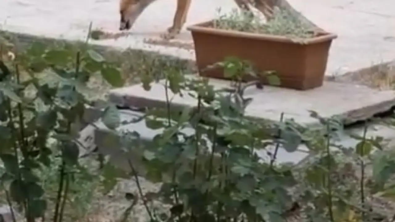 Aç kalan tilki, Kazamaoğlu’nun evini adeta bir uğrak noktası haline getirdi. Bahçeye girip sessizce karnını doyuran tilki, suyunu da içtikten sonra tekrar doğaya dönüyor.