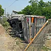 Tır narenciye bahçesine devrildi