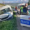 Samsun'da tırın sıkıştırdığı kapalı kasa minibüsün yoldan çıkarak su kanalına girdiği kaza maddi hasarla atlatıldı.