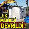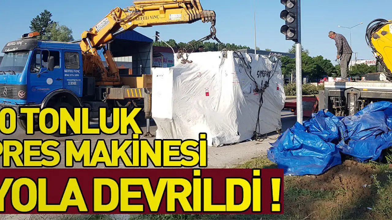 Tırın taşıdığı 40 tonluk pres makinesi yola devrildi