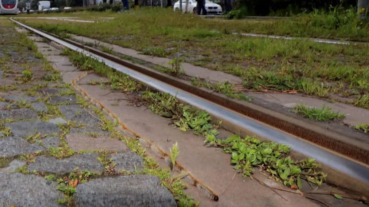 Samsun'un İlkadım ilçesinde hava sıcaklığının artmasıyla birlikte ortaya çıkan tırtılların (çam kese böceği) kelebeğe dönüşmek için yaptığı yolculuk, tramvay rayları üzerinde görüntülendi.