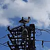 Tokat'ta elektrik direğindeki leylek yuvası yandı