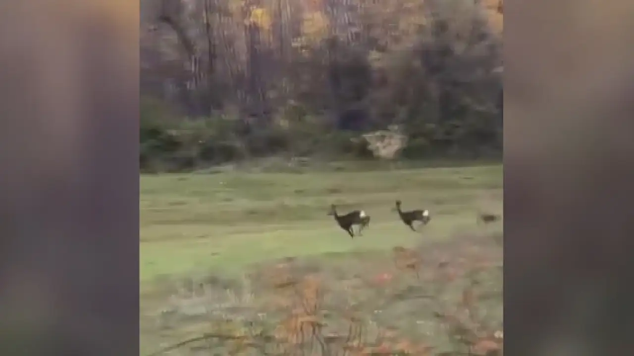 Bu kişinin cep telefonu kamerasıyla kaydedilen görüntülerde, karacaların kaçarak uzaklaştıkları anlar da yer aldı.
