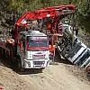 Tomruk yüklü kamyon devrildi sürücü yaralandı