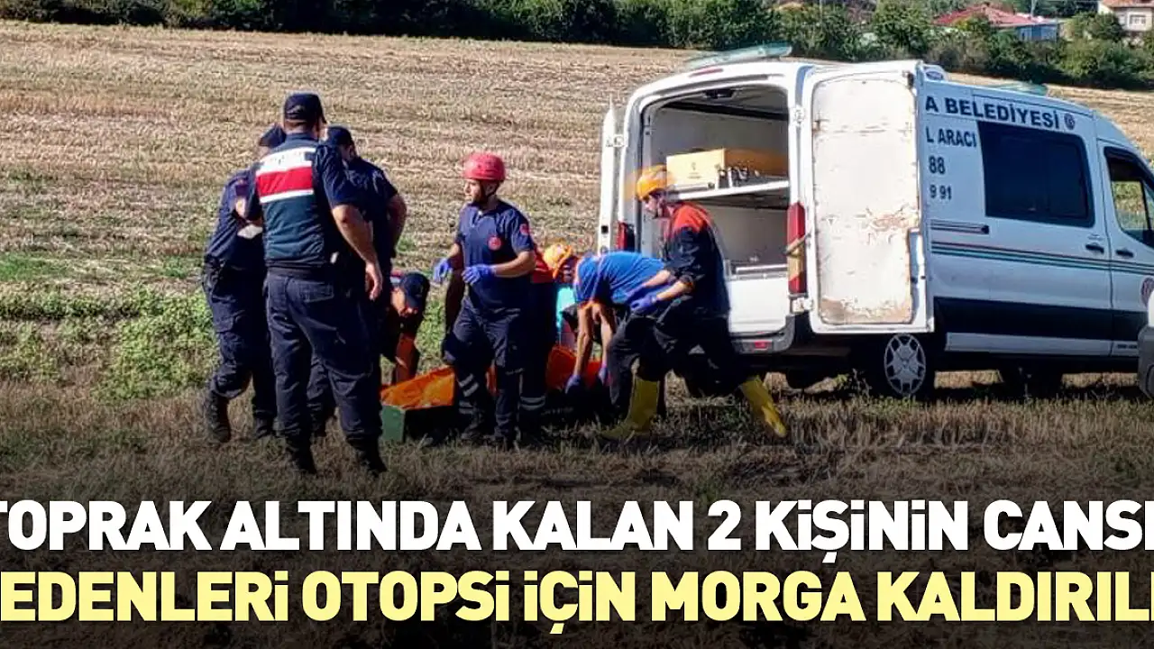 Toprak altında kalan 2 kişinin cansız bedenleri otopsi için morga kaldırıldı