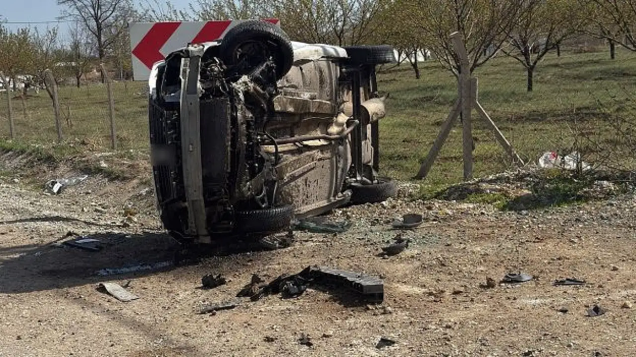 Toprak yığınına çarpan otomobil, savrularak takla attı.