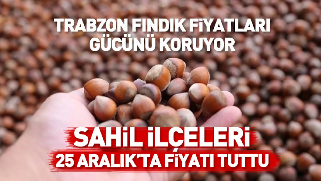 25 Aralık Trabzon fındık fiyatları belli oldu. Sahil ilçelerinde ihracat talebi fiyatları destekliyor, ilçe ilçe en düşük ve en yüksek rakamlar.