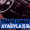 Araç içerisinde sürücü koltuğunda olması gerekirken yan koltukta oturan şahıs, ayaklarıyla direksiyonu kontrol etti. O anları ise cep telefonuyla kayda aldı