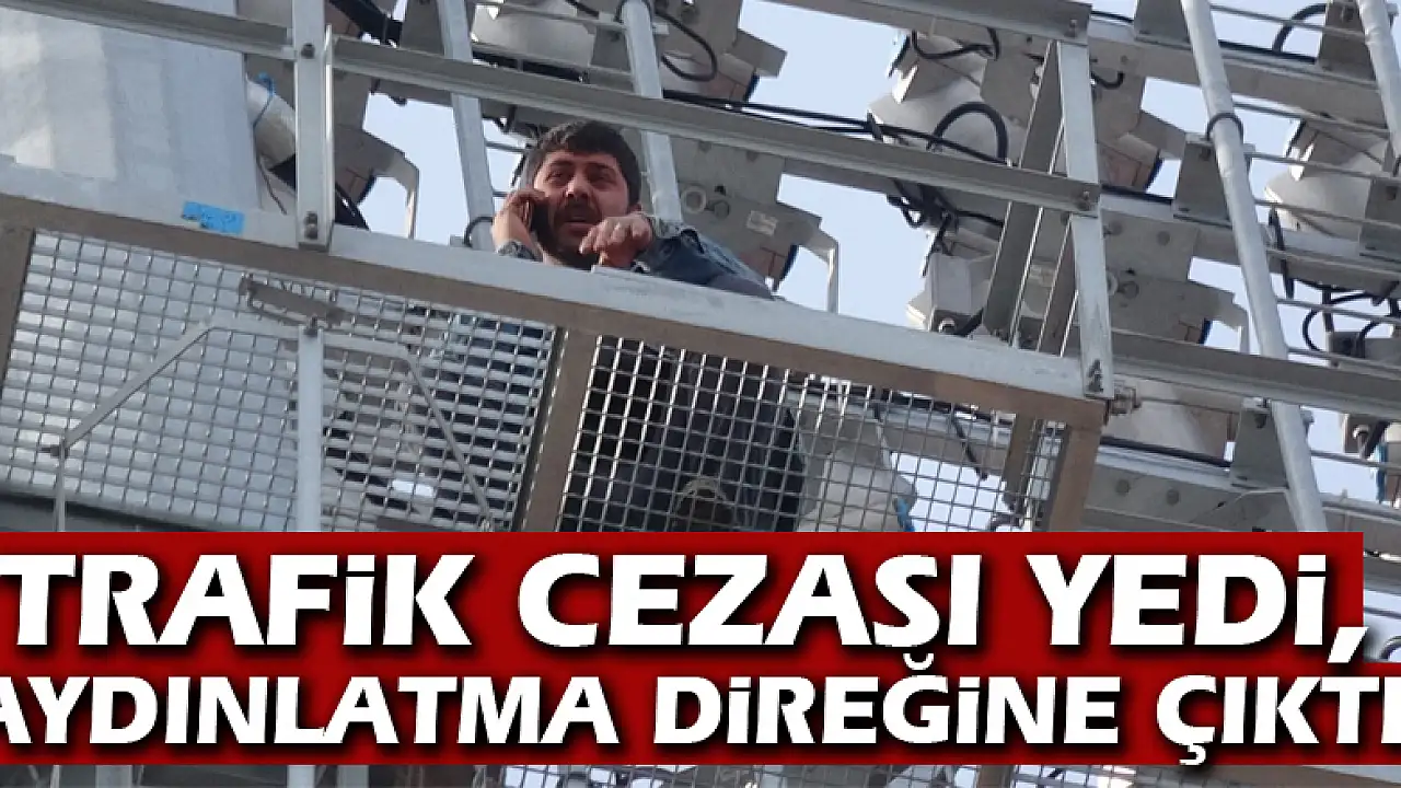 Trafik cezası yedi, aydınlatma direğine çıktı