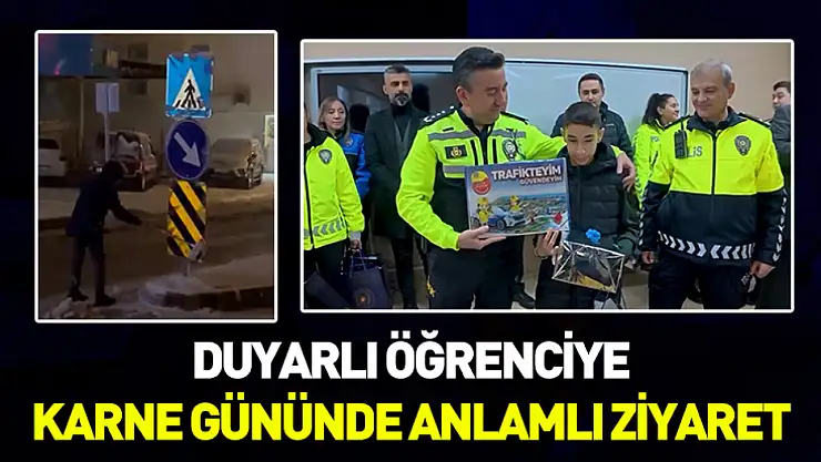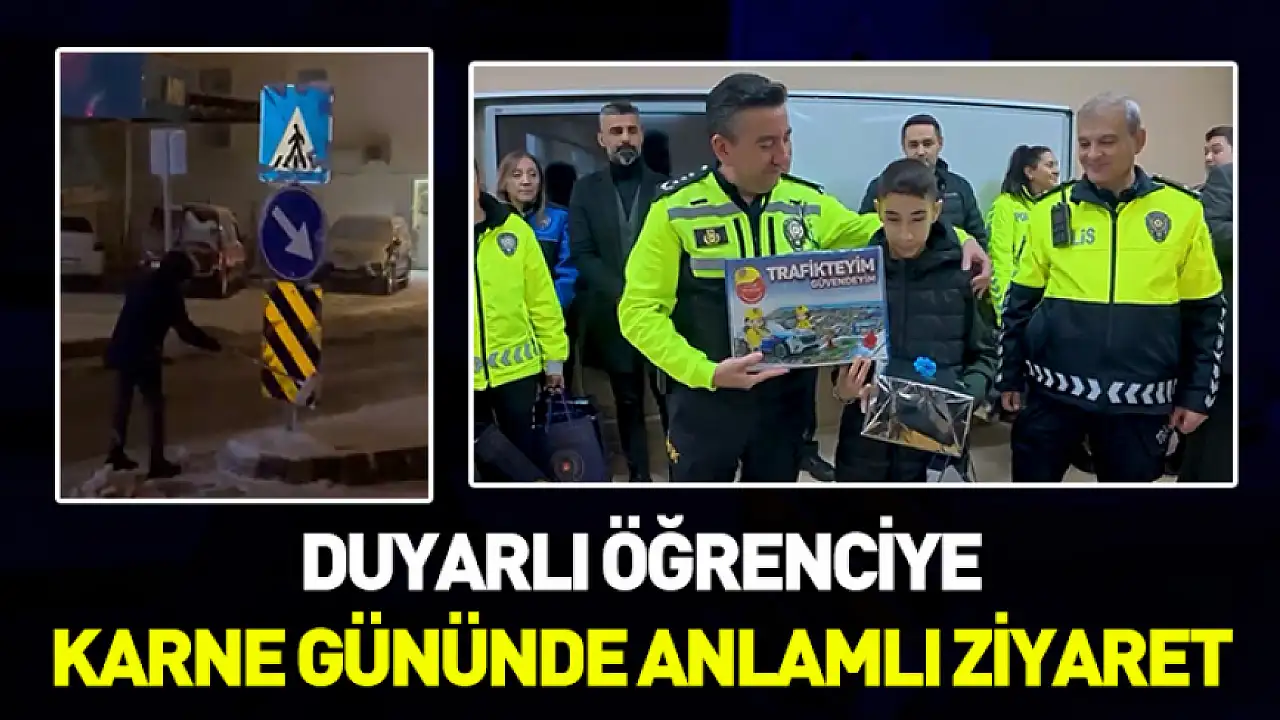 Samsun'da yoğun kar yağışı sırasında kapanan trafik levhalarını temizleyerek sürücülerin güvenliğini sağlayan ortaokul öğrencisi Kadir Emin Gürsoy, bu örnek davranışının karşılığını karne gününde aldı. Trafik Başkanlığı koordinesinde okula gelen polis ekipleri, küçük kahramanı sınıfında ziyaret ederek ödüllendirdi.