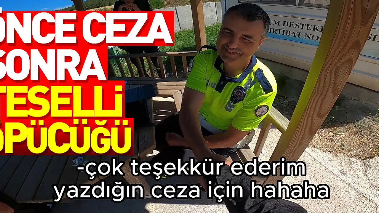 Trafik polisinden önce ceza, sonra teselli öpücüğü