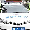 Samsun'da trafik polisleri ekip otosunun üzerine takılan led lambalı tabelaya yazdıkları uyarı yazıları ile sürücülere uyarılarda bulunuyor