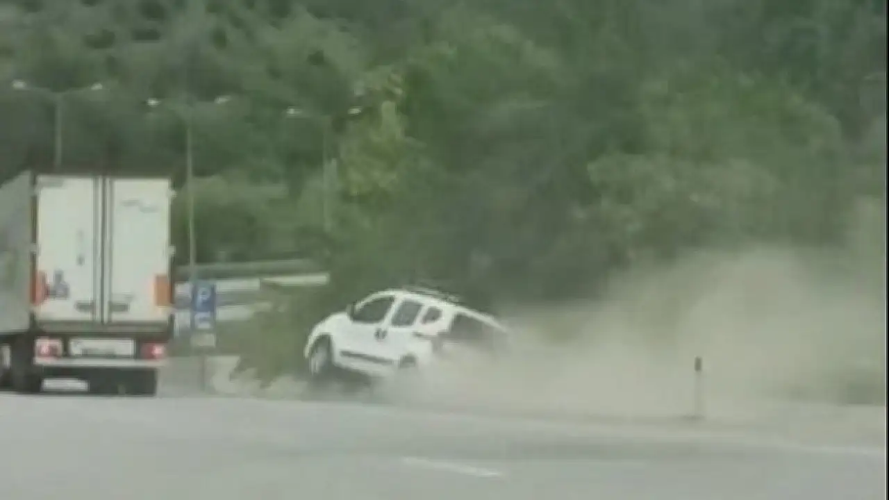 Samsun-Ankara karayolunda tır ile hafif ticari araç arasında henüz bilinmeyen nedenle yol verme tartışması yaşandı. Arkadan gelen bir araçtan çekilen görüntülere göre tır, arkasından gelen hafif ticari araca yol vermiyor ve onu sıkıştırarak yolun dışına atıyor. Tırın sıkıştırması sonucu yolun sağındaki kanala düşen araç, sürücünün güçlükle toparlaması sonucu tekrar yola çıkıyor ve içindekiler ölümden dönüyor. Dehşet anları ise anbean cep telefonu kamerasına yansıdı.